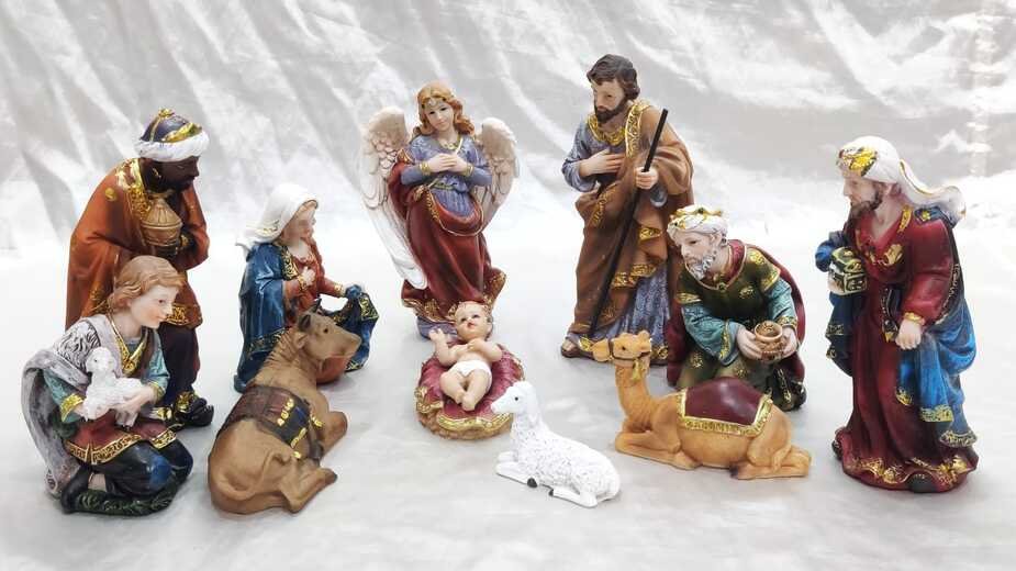- Product includes : Baby Jesus , Angel , St. Joseph, Mother Mary , Good shepherd,3 Wise men, Camel, Cow, Sheep,